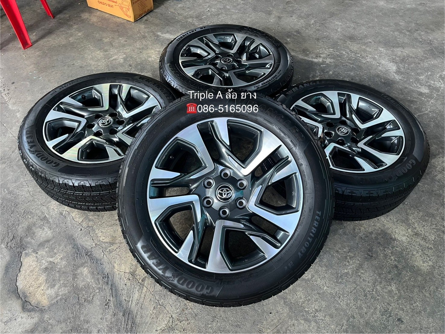 ล้อแม็ก Mitsu Triton Athlete ขอบ 18 สีดำแท้ พร้อมยางใหม่ป้ายแดง 255-65-18 Goodyear ปี 24