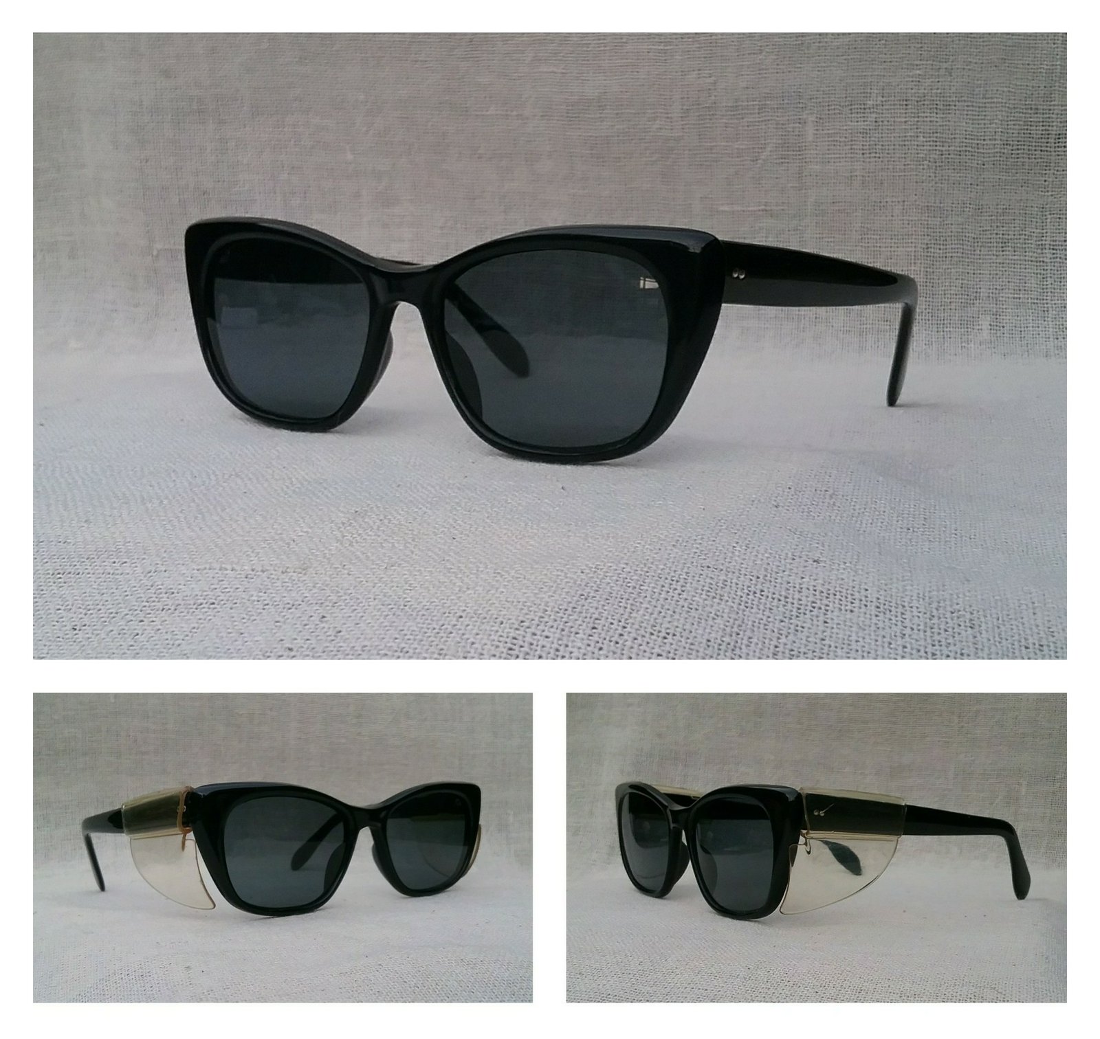 ★★★ ก้านขาทั้งสองข้าง มี 'ไซด์ชีลด์' (โลห์กำบัง : Safety Side Shields) ในแบบของแว่นตานิรภัย (Goggles) ถอดเข้า–ออกได้ ปกป้องดวงตาจากกระแสลม ฝุ่นละออง น้ำ สารเคมี ฯลฯ