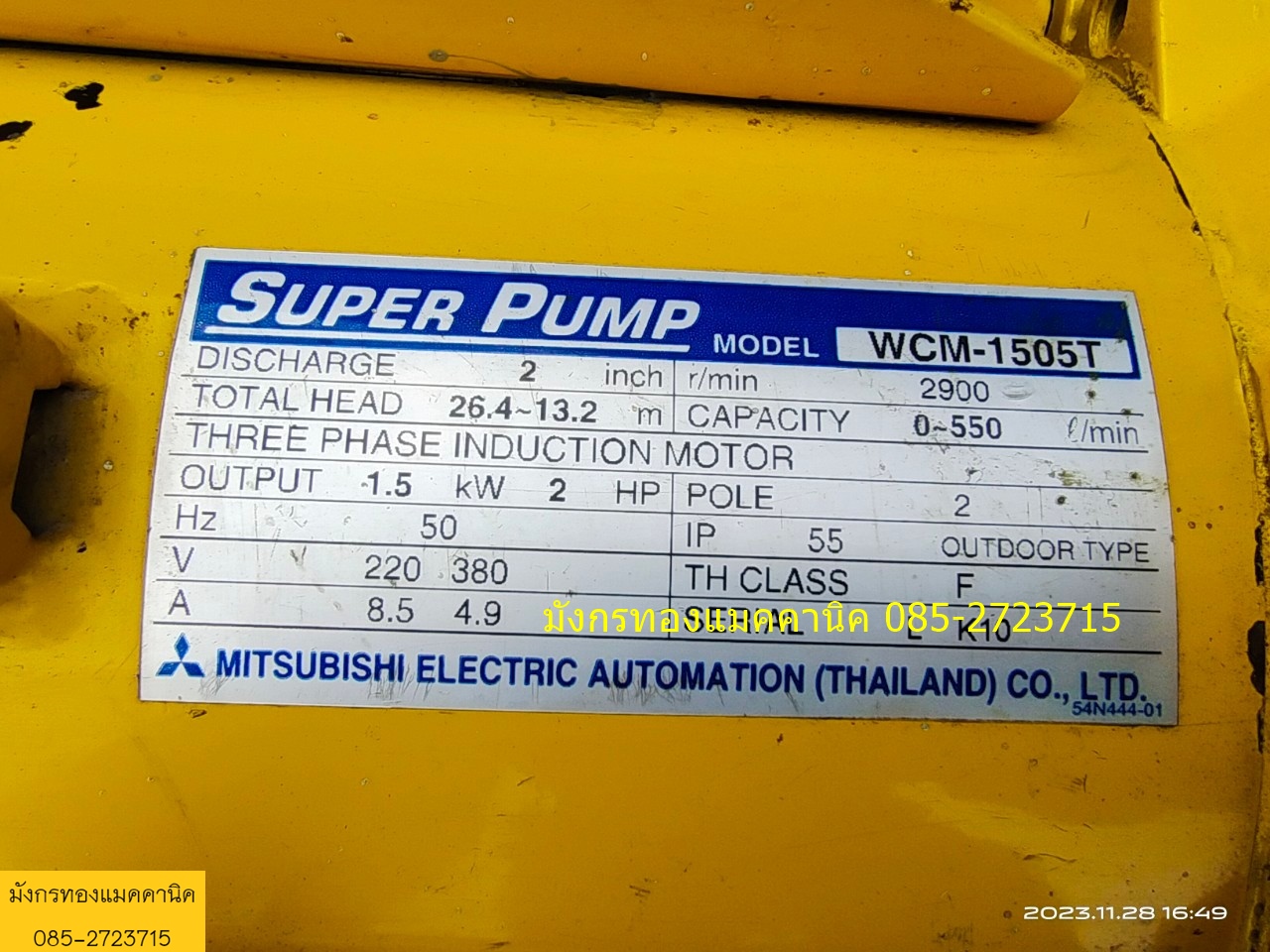 ปั๊มน้ำ มิตซูบิชิ รุ่น WCM-1505T ขนาด 2 แรง ใช้ไฟสามเฟส 380V ท่อน้ำเข้าออก 2 นิ้ว ลวดเดิมๆ เก็บสีตรงปั๊มจุดเดียว เช็คสภาพแล้ว ใช้งานได้ดีปกติ ราคา 5,000 บาทไม่รวมส่ง
